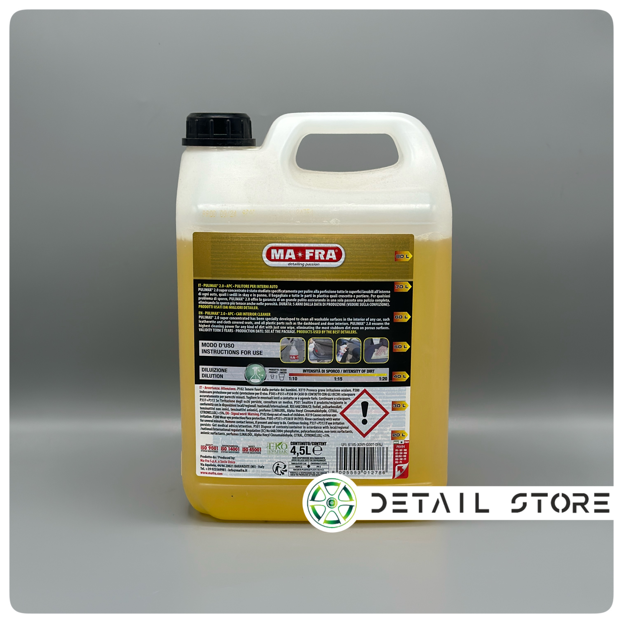 داخل شوی مفرا پولیمکس با حجم 4.5 لیتر محصولی حرفهای برای تمیزکاری کابین خودرو است. این مایع غلیظ و اقتصادی، تمامی سطوح داخلی از جمله چرم، پارچه، پلاستیک و داشبورد را بهطور کامل تمیز میکند. همچنین، با قدرت پاککنندگی بالا، آلودگیهای چسبنده را در یک مرحله حذف میکند.