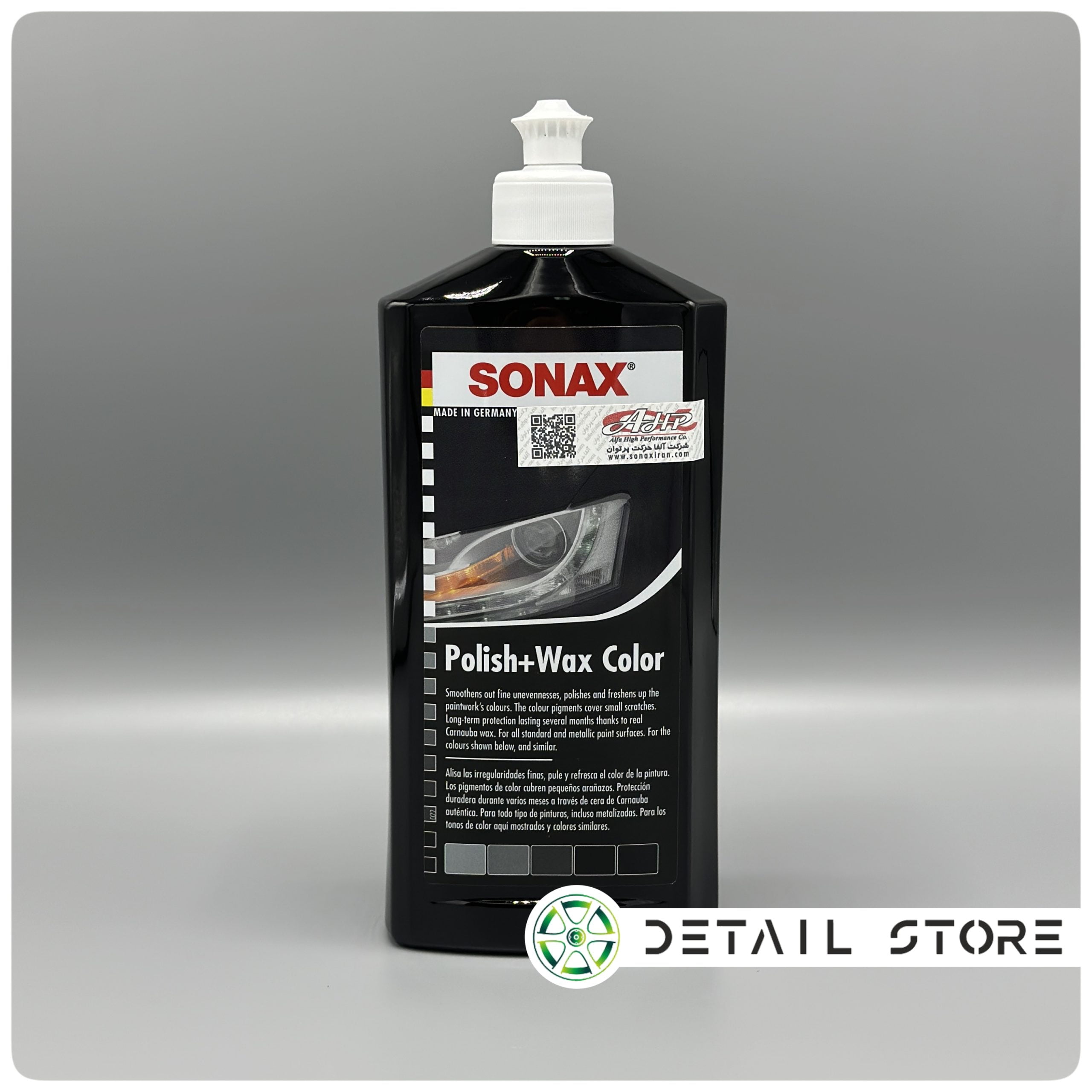 پولیش متوسط سوناکس، رنگ های ضد خش را به صورت حرفه ای و بدون به جای گذاشتن اثر هولوگرام، پولیش می دهد. در این محصول هیچگونه واکس یا سیلیکونی موجود نیست.